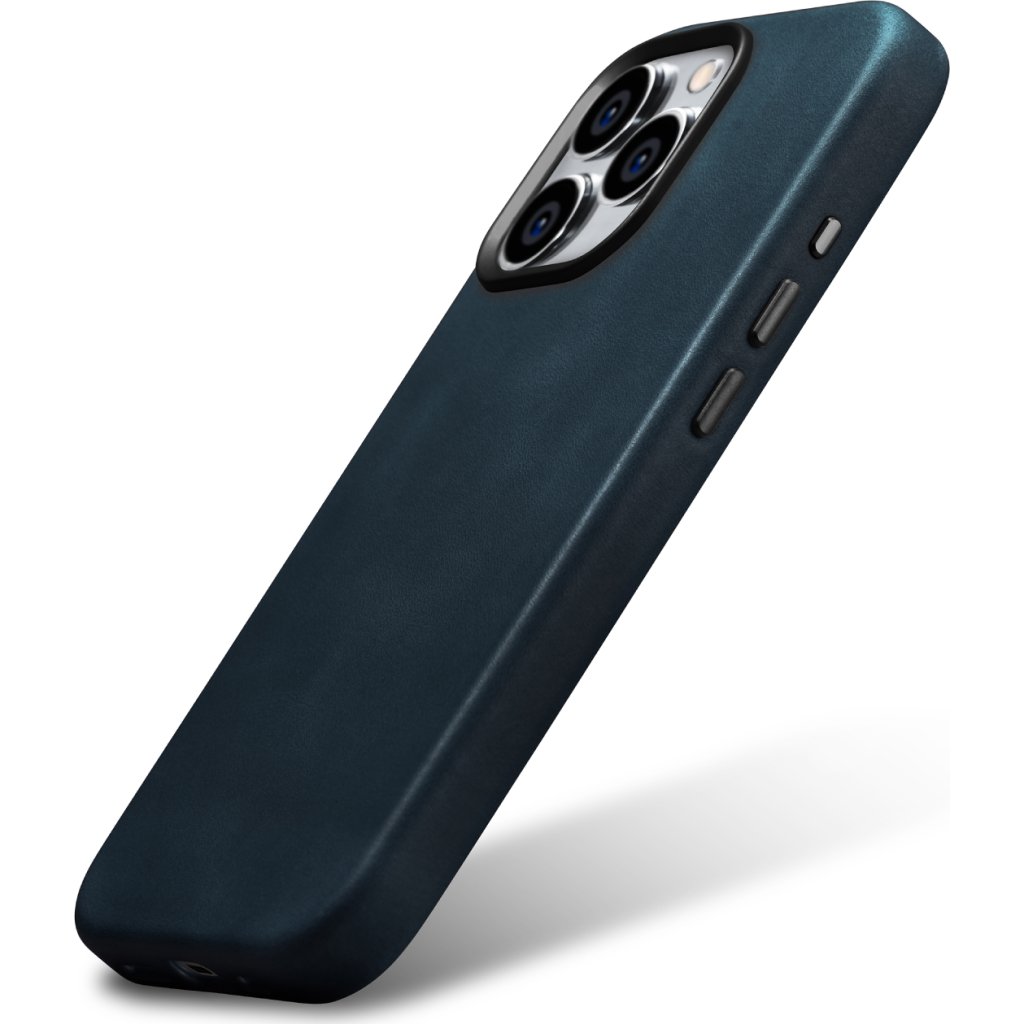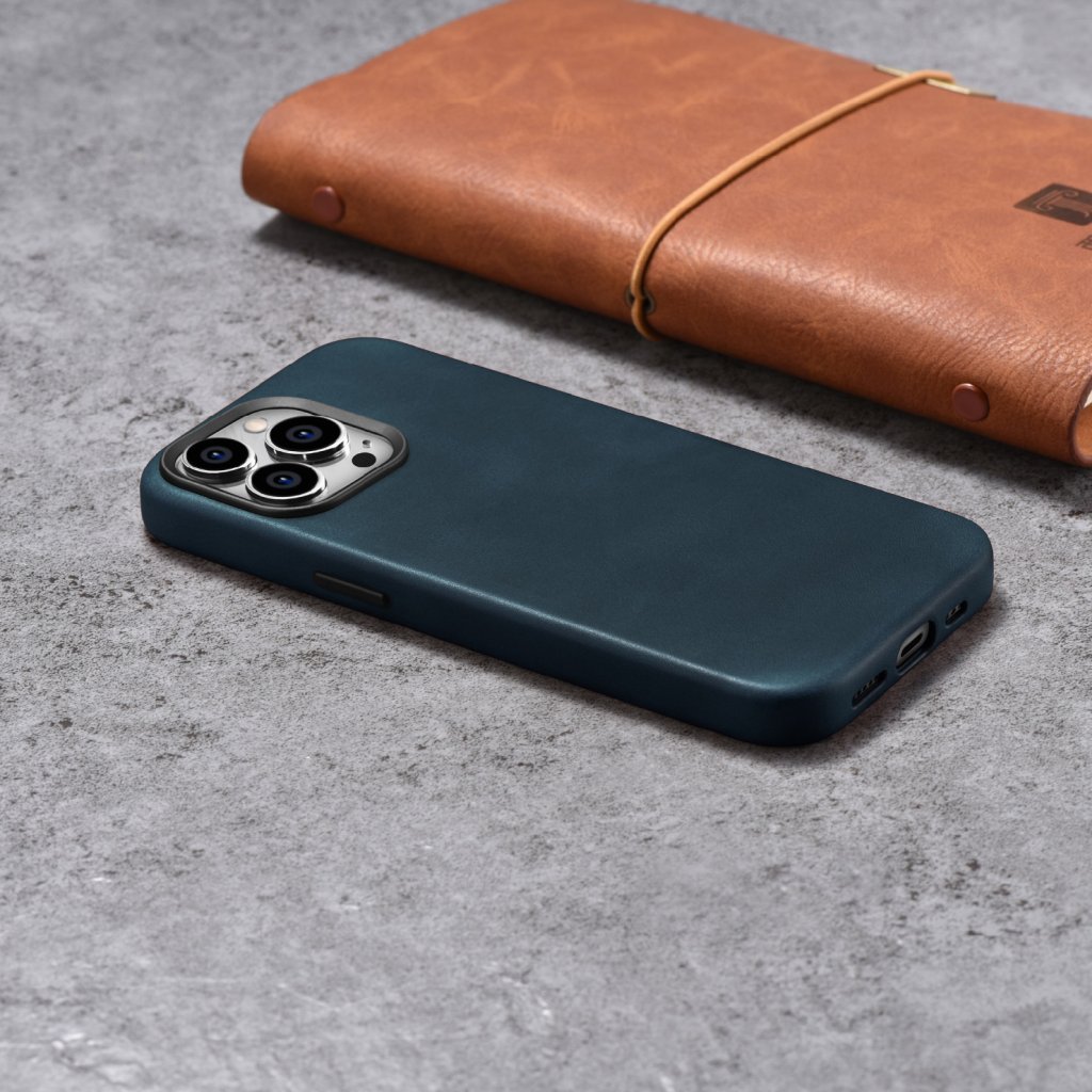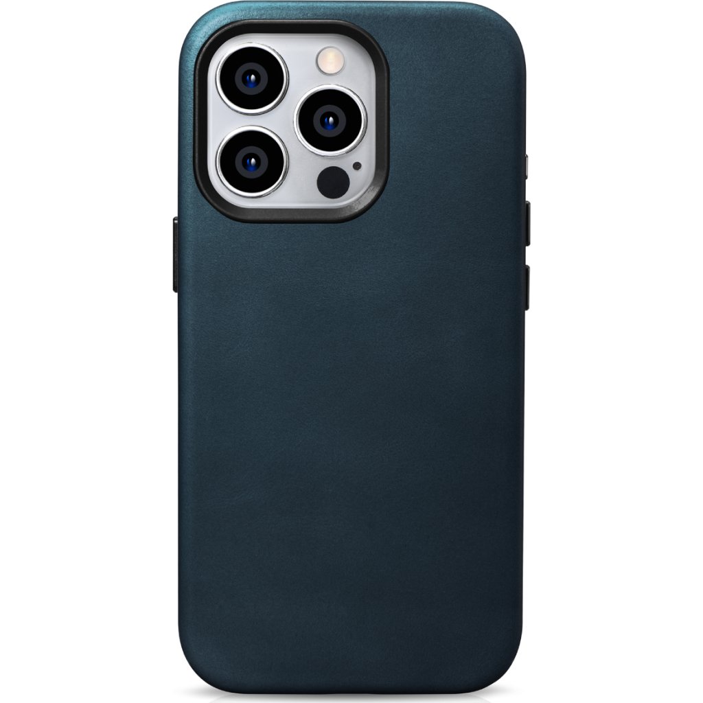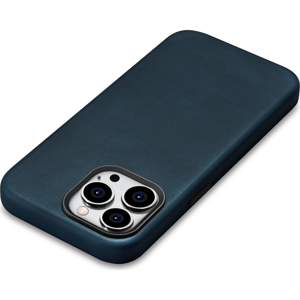 Kožený obal na iPhone 15 Pro - iCarer, OilWax MagSafe Blue