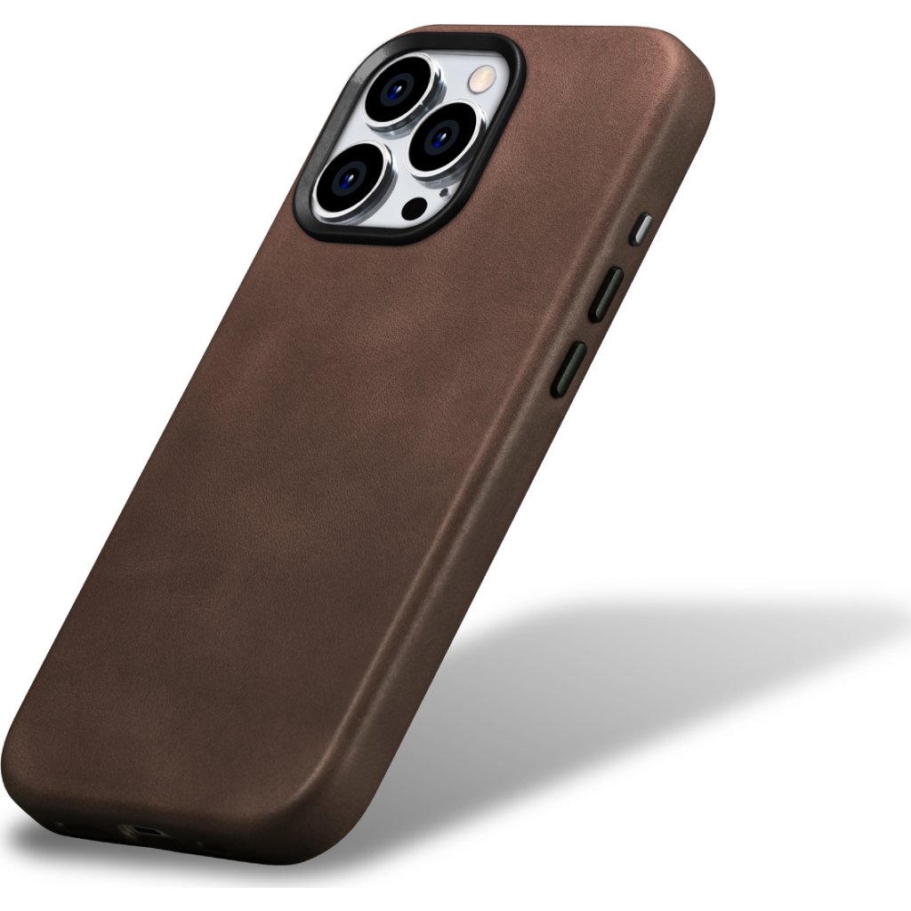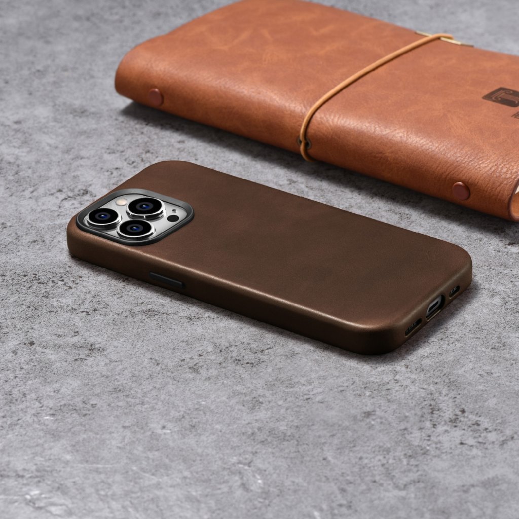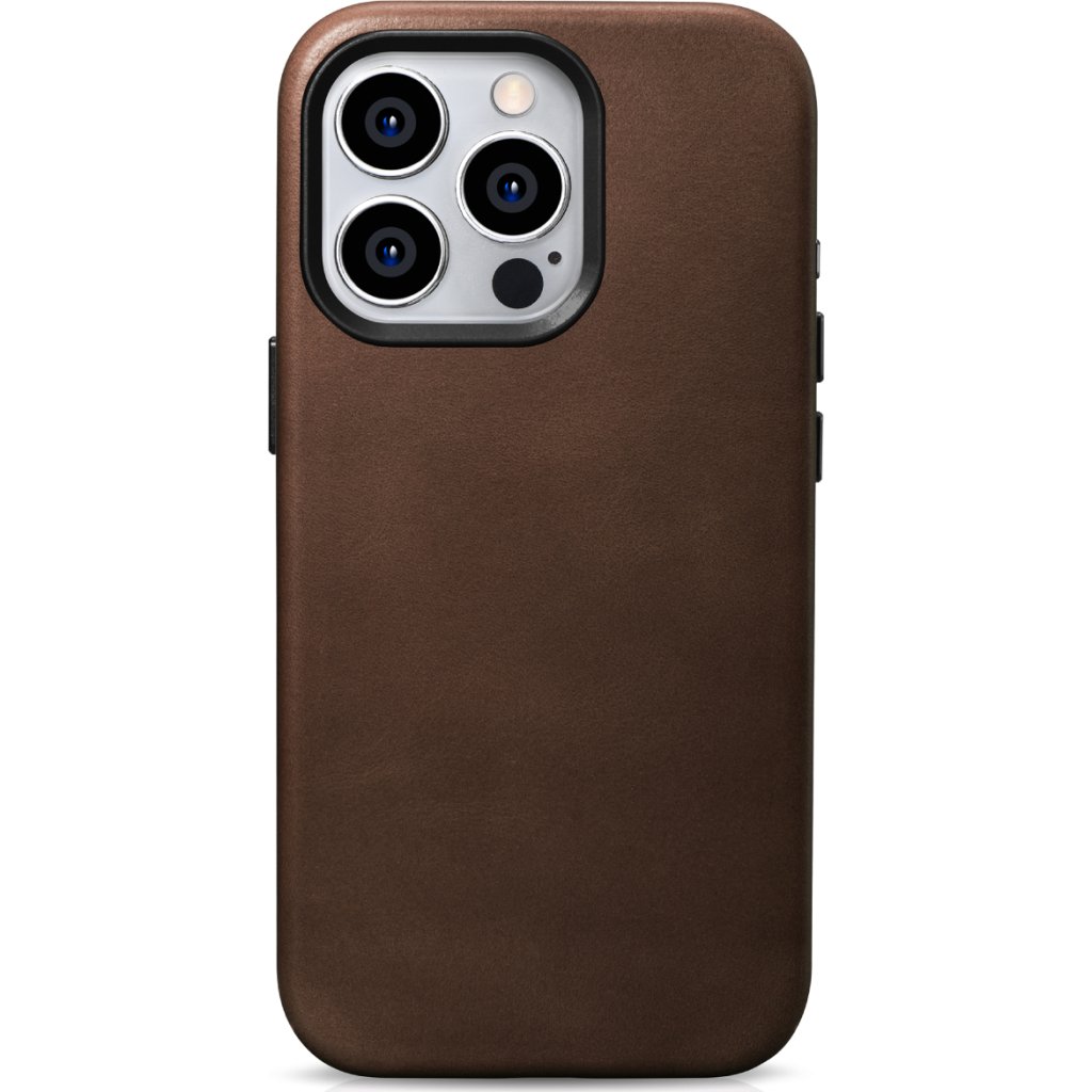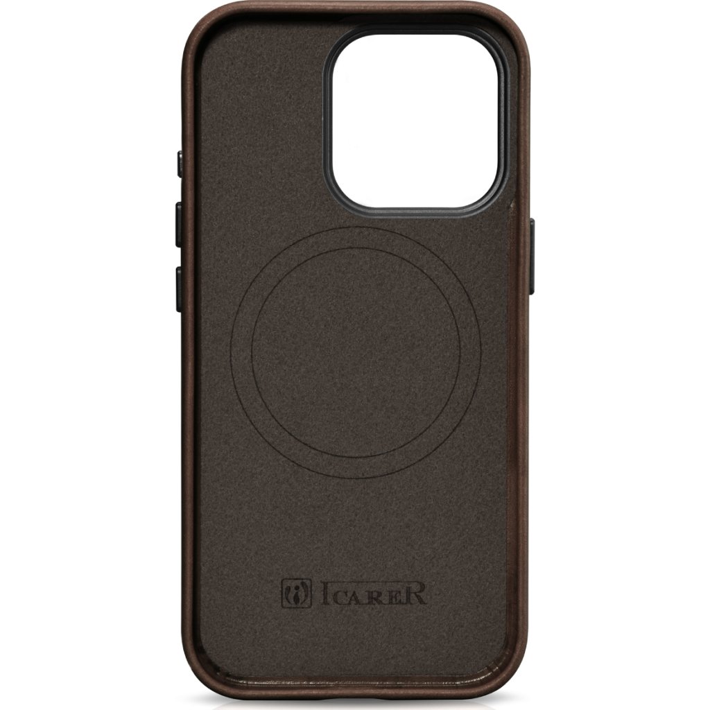 Kožený obal na iPhone 15 Pro - iCarer, OilWax MagSafe Brown