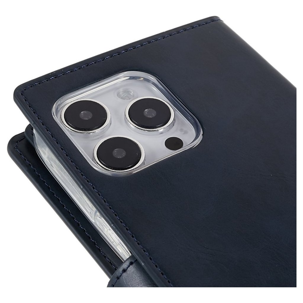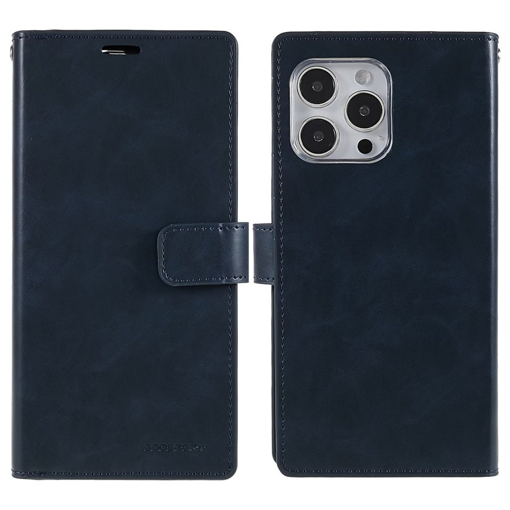 Ochranné pouzdro na iPhone Mercury Mansoor Diary je zavírací elegantní kryt pro Apple telefony. Příjemný obal plní kromě ochranné funkce také použití jako peněženky, protože má přihrádky pro uložení drobné hotovosti nebo platebních karet.