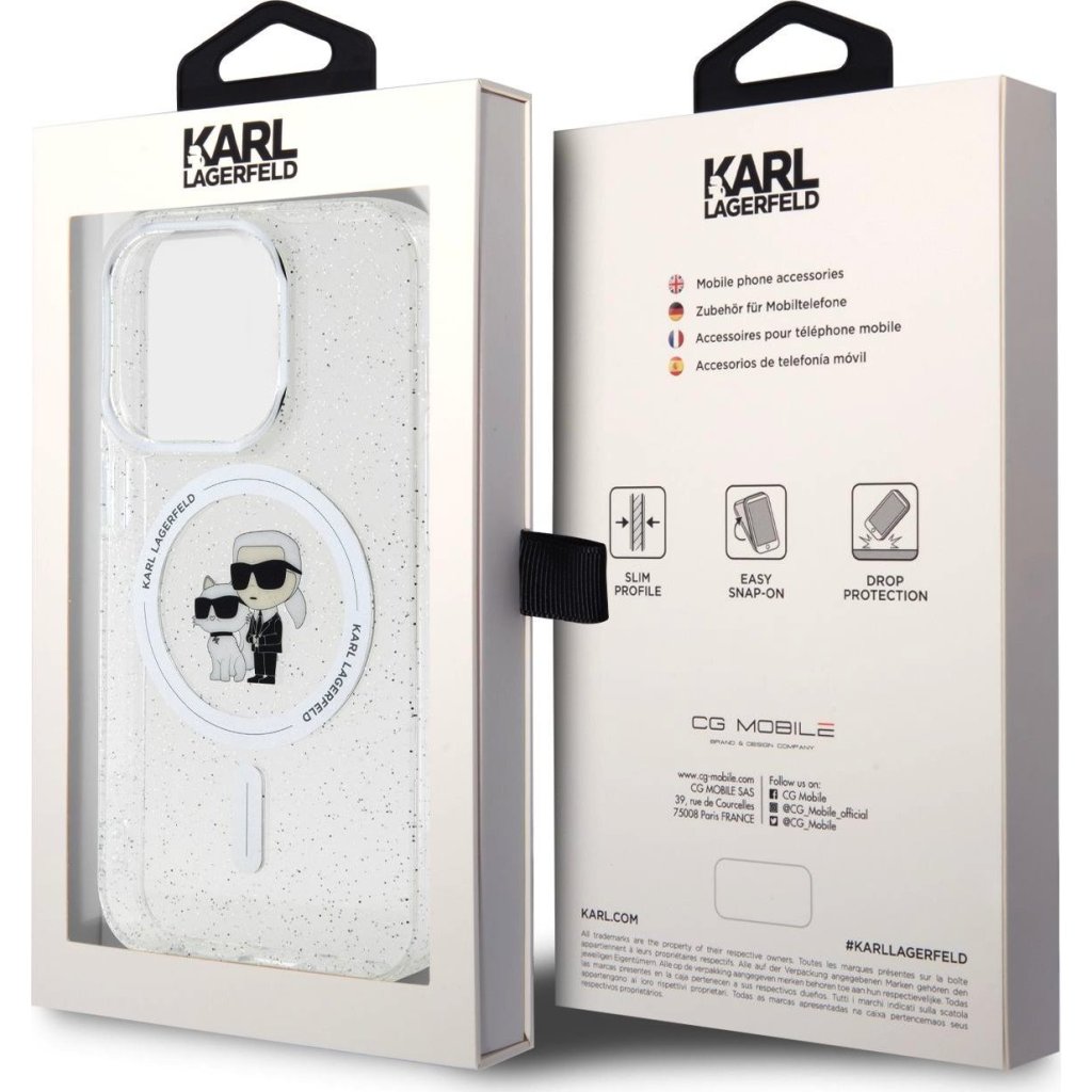 Ochranný kryt na iPhone 15 Pro - Karl Lagerfeld, IML Glitter Karl and Choupette MagSafe Transparent