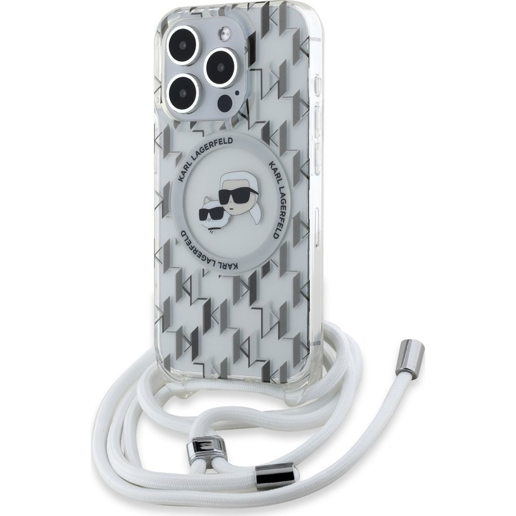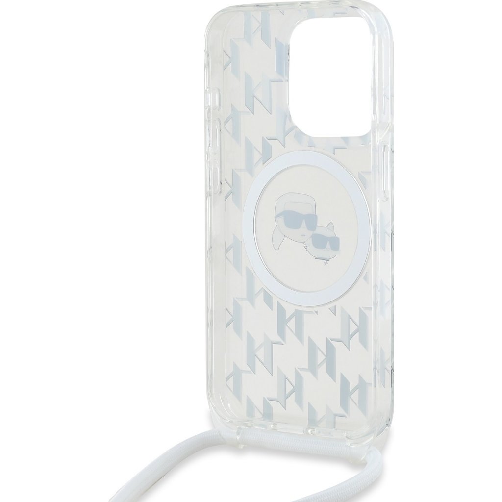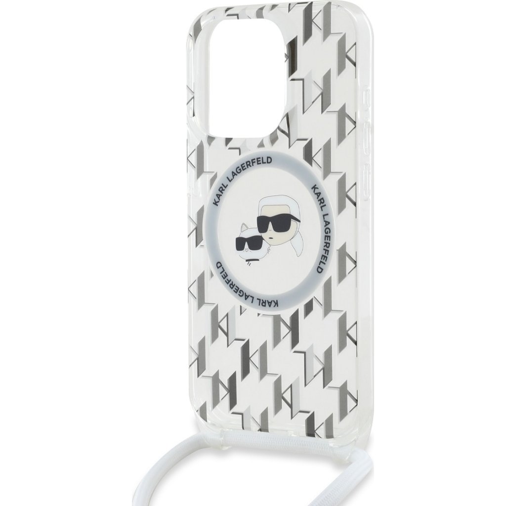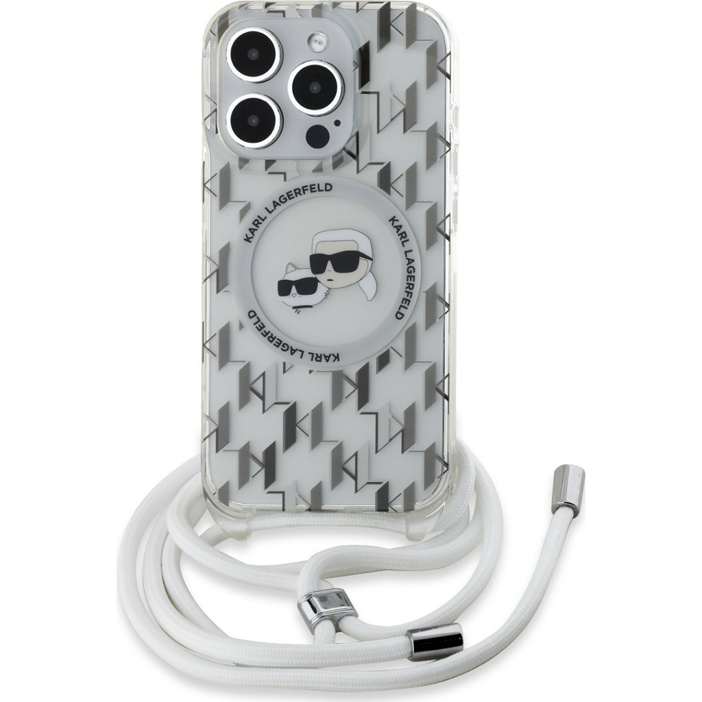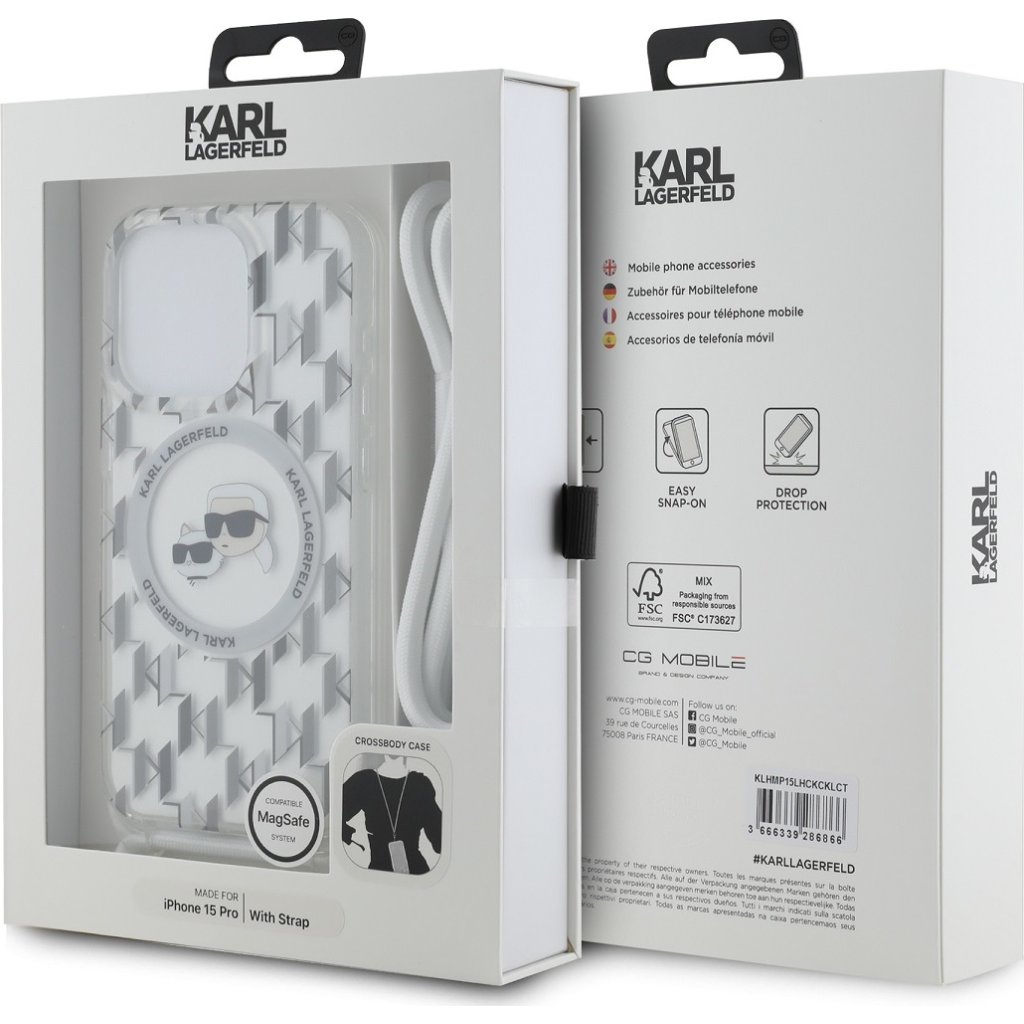 Ochranný kryt na iPhone 15 Pro - Karl Lagerfeld, IML Monogram Crossbody K&CH Heads Magsafe Transparent