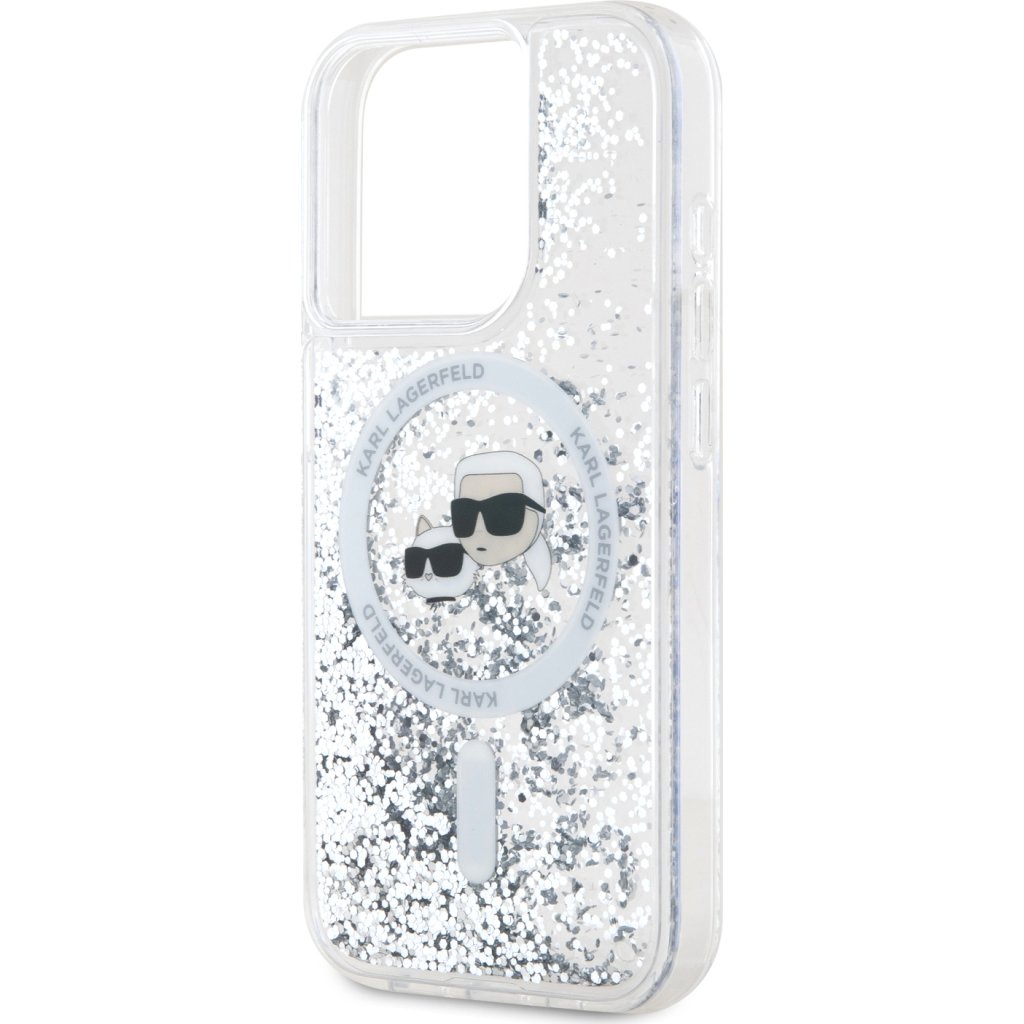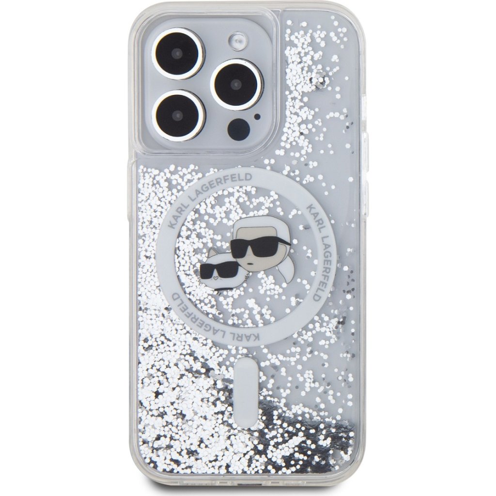 Ochranný kryt na iPhone 15 Pro - Karl Lagerfeld, Liquid Glitter Karl and Choupette Heads MagSafe Transparent
