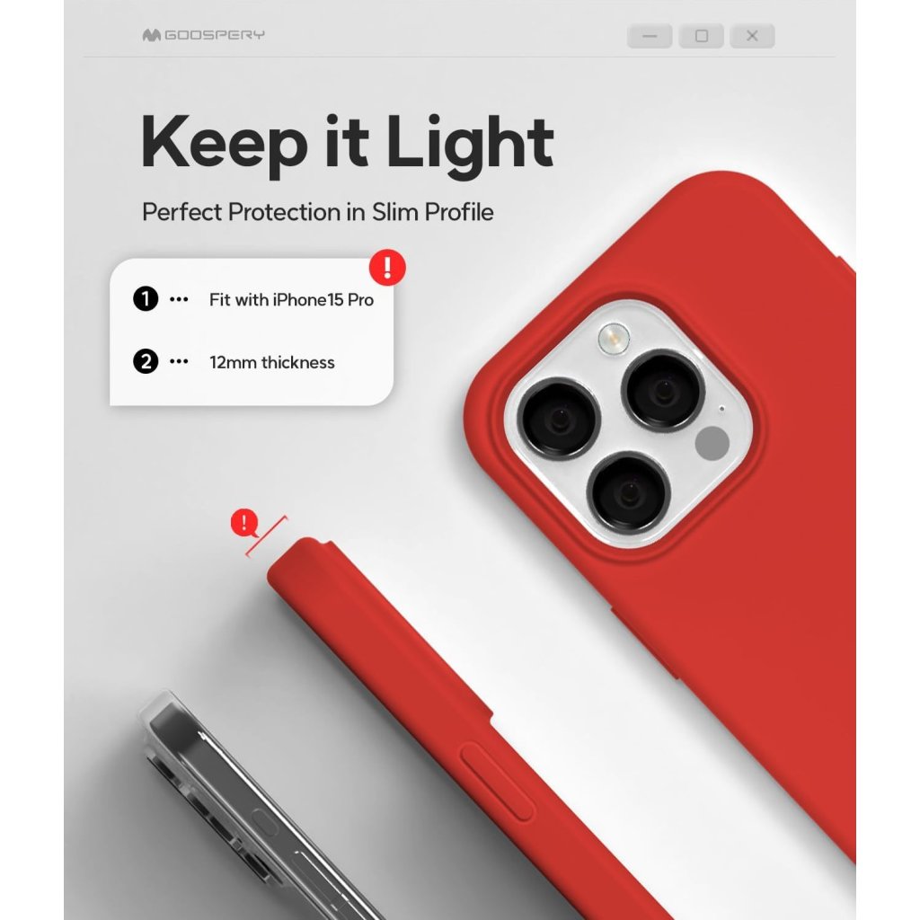 Ochranný kryt pro iPhone 15 Pro Mercury Silicone perfektně ochrání před škrábanci a menšími pády a zároveň poskytuje pohodlné ovládání zařízení.