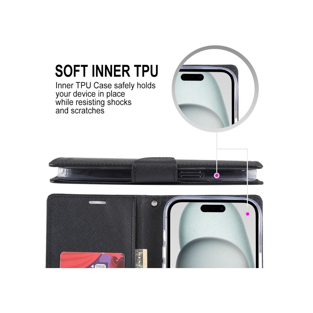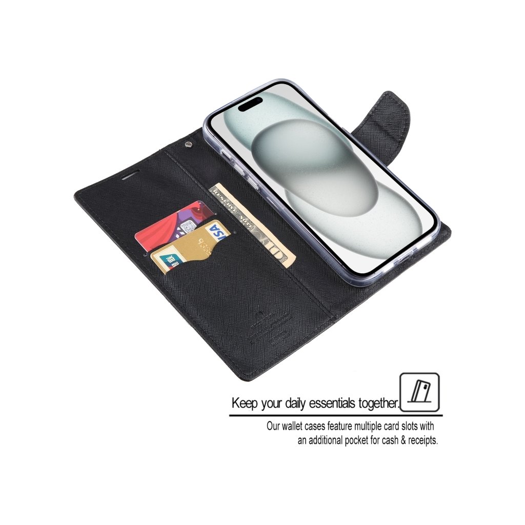Pouzdro na iPhone 15 Pro - Mercury, Fancy Diary Black/Black