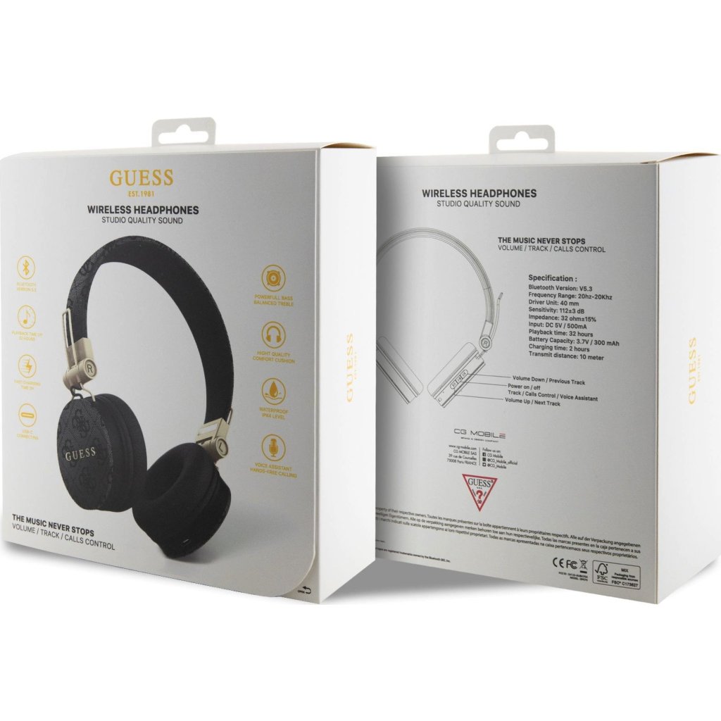 Bezdrátová náhlavní sluchátka - Guess, PU 4G Metal Logo Black
