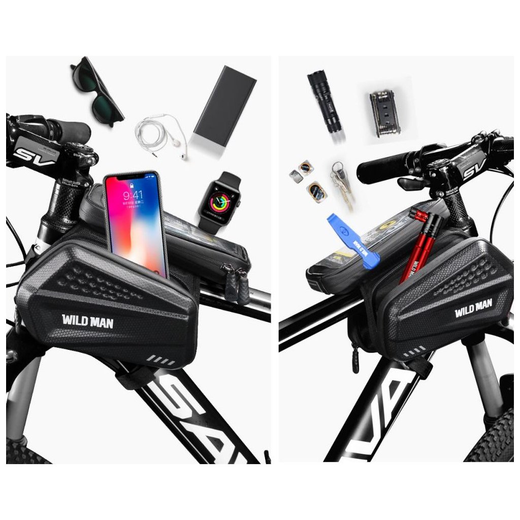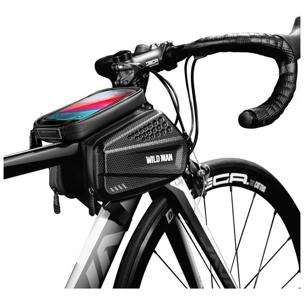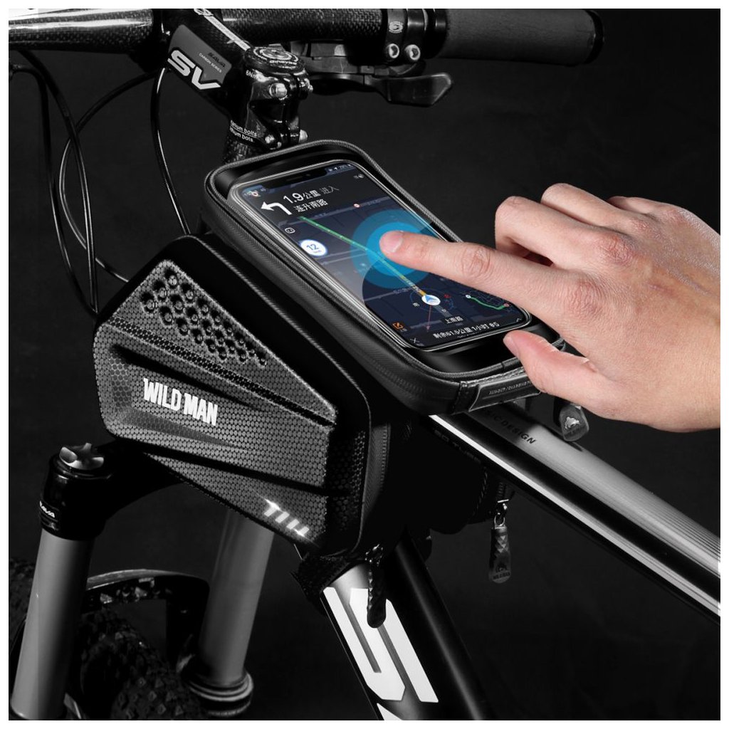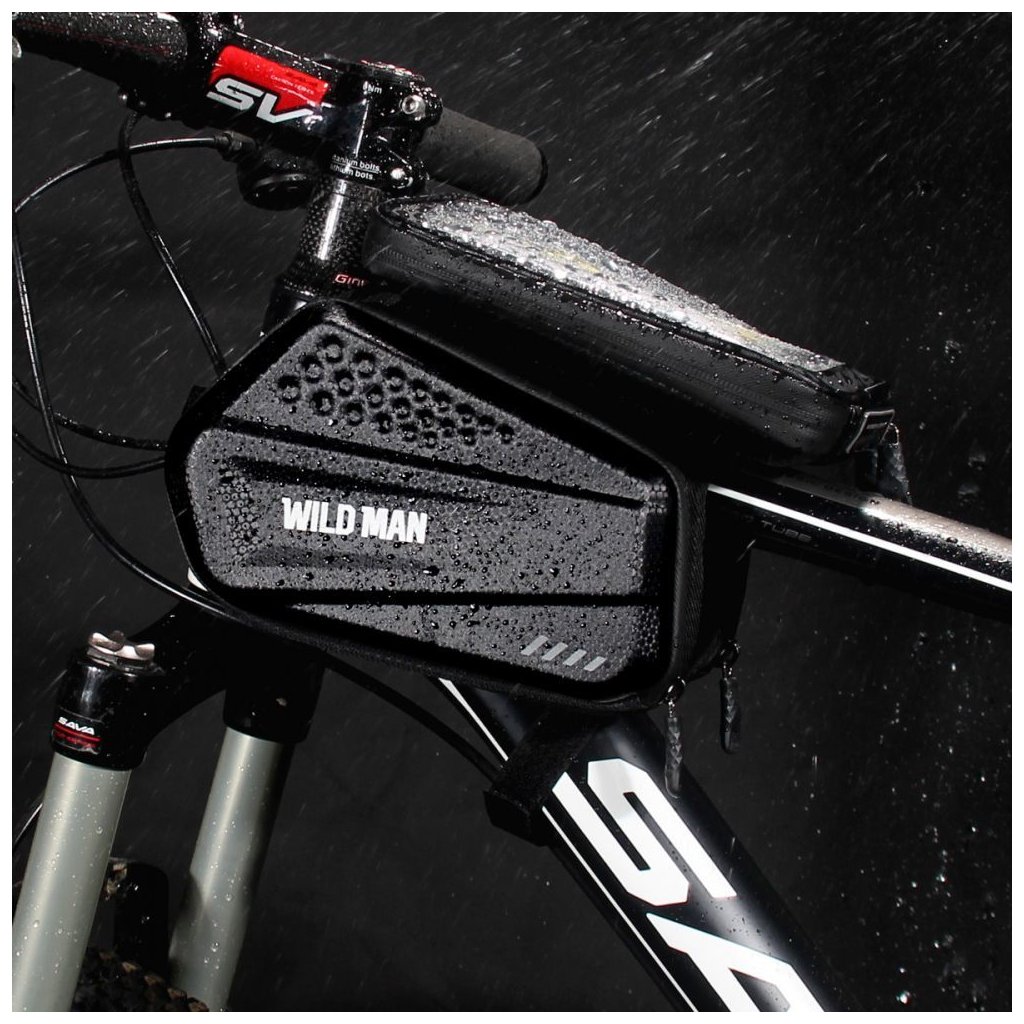 Cyklotaška s otvorem na mobilní telefon WildMan Sakwa XXL pojme hodně příslušenství při cyklovýletech a plní i funkci držáku pro mobilní telefon. Připevňuje se na rám kola a je odolná vůči vnějším vlivům.