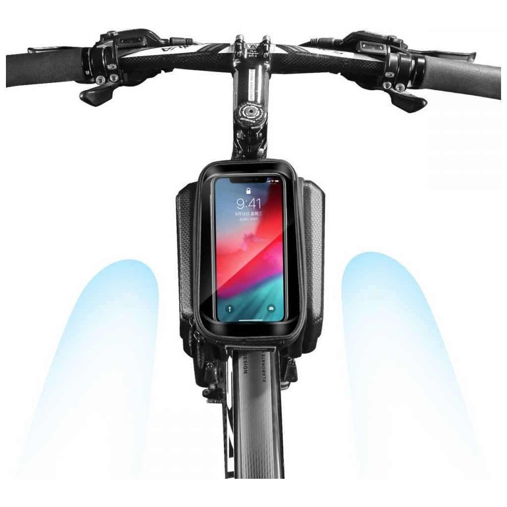 Brašna na kolo pro telefon je velmi šikovným zařízením, které plní hned několik funkcí zároveň. Jedná se o ochranný obal, kterým ochráníte chytrý telefon a bude ho plně krýt. Průhledná přední část dává možnost ovládání telefonu a ten reaguje i na dotyky. Funkce mobilu tak nejsou nijak limitovány. Podporovány jsou telefony do velikosti 17,5 x 8,5 cm.