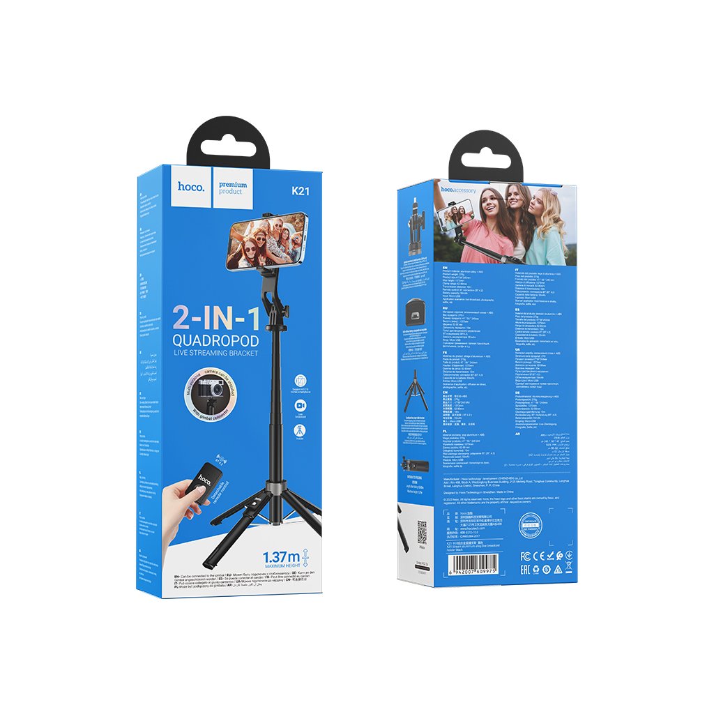 Tripod / bluetooth selfie tyč - Hoco, K21 Black