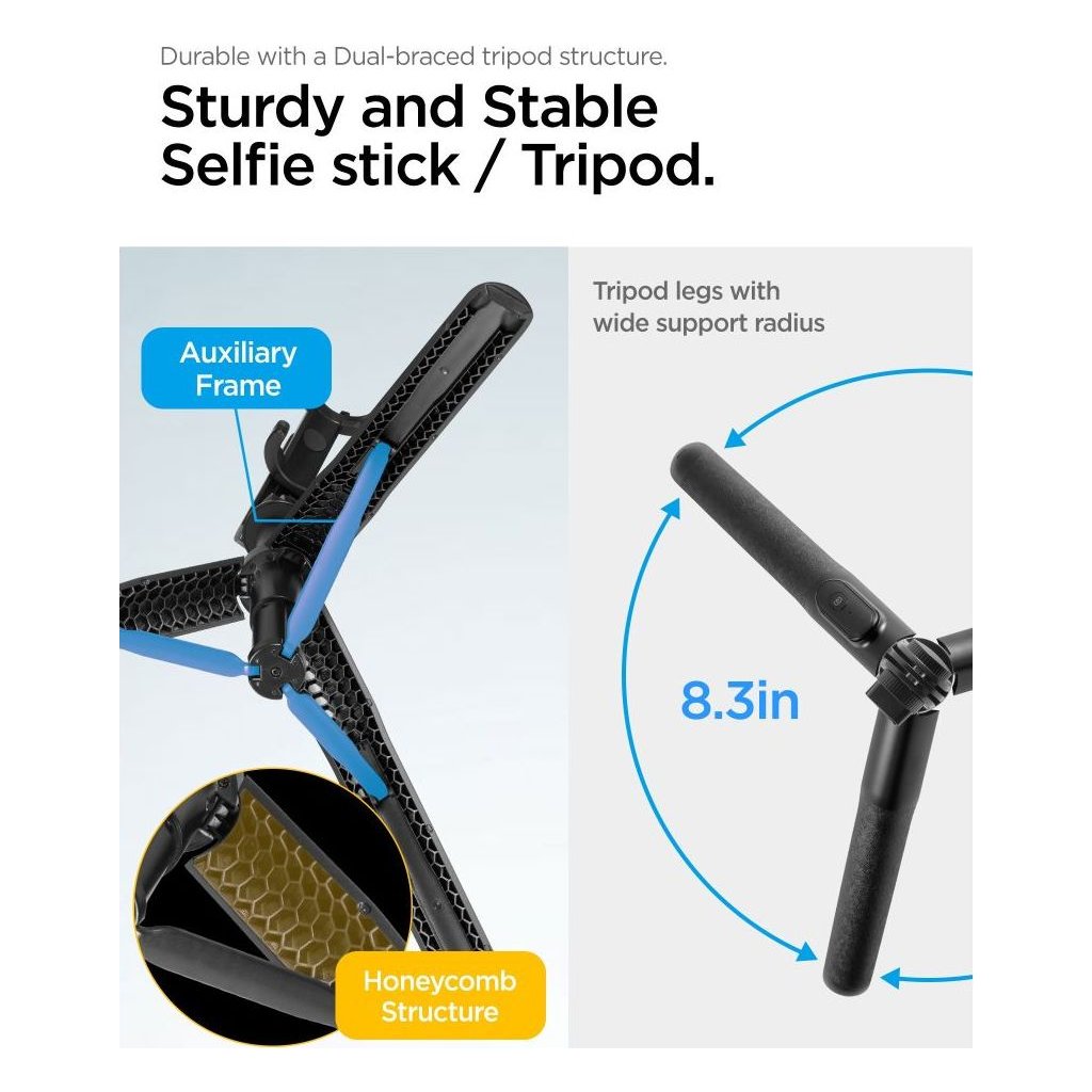 Selfie tyč s Bluetooth ovladačem a stojánkem Spigen S560W je kompaktní a bezdrátový selfie stick. Držák telefonu má univerzální velikost a bezdrátová spoušť vám dá potřebnou svobodu. Funkce stativu zase zajistí potřebnou stabilitu.