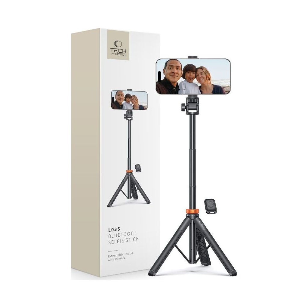 Selfie tyč s Bluetooth ovladačem a stojánkem - Tech-Protect, L03S Selfie Stick Tripod Black