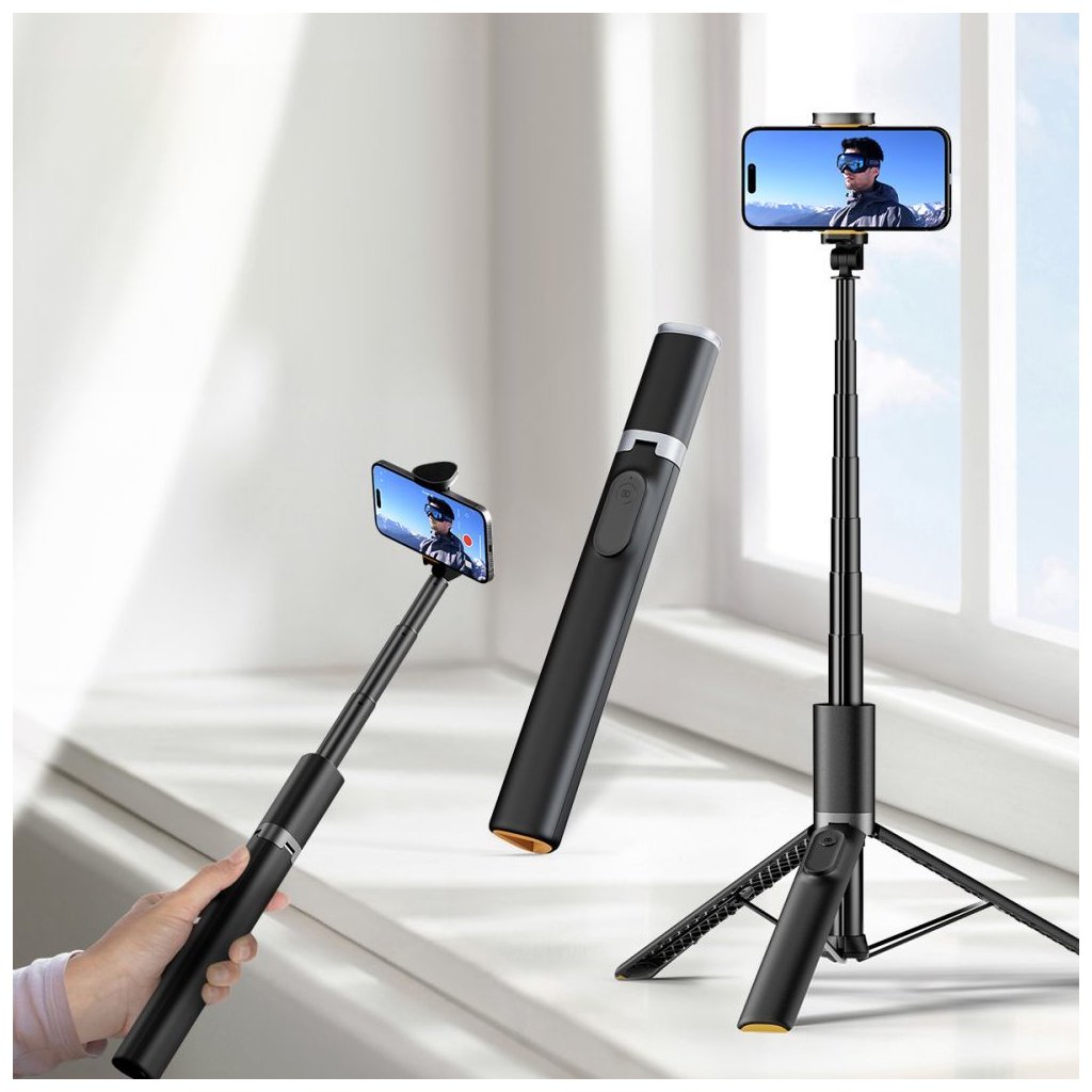 Selfie tyč s Bluetooth ovladačem a stojánkem Tech-Protect L08S je doplněk vyrobený z vysoce kvalitních materiálů, které zaručují dlouhodobé a spolehlivé používání. Je vybaven stativem se stabilními nohami a umožňuje uživatelům objevovat nové možnosti při fotografování a natáčení.