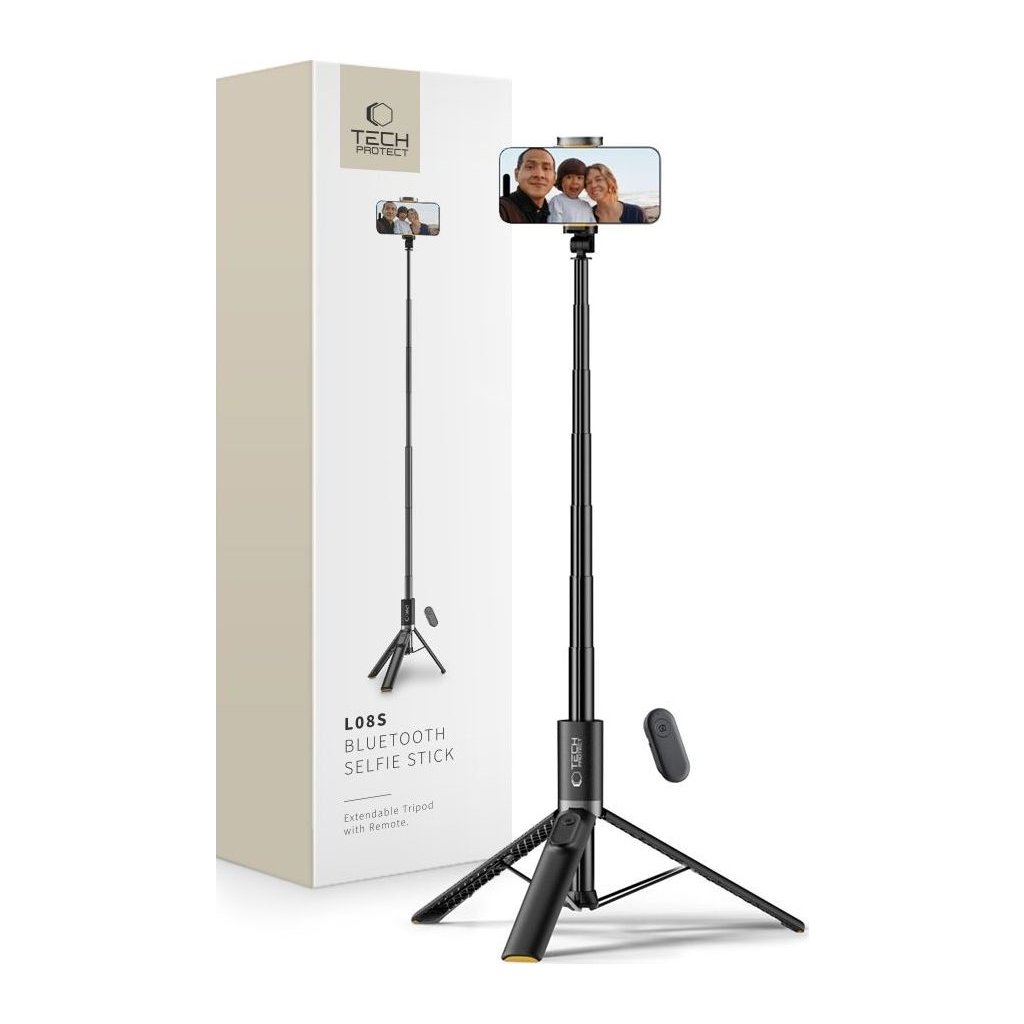 Selfie tyč s Bluetooth ovladačem a stojánkem - Tech-Protect, L08S Selfie Stick Tripod Black