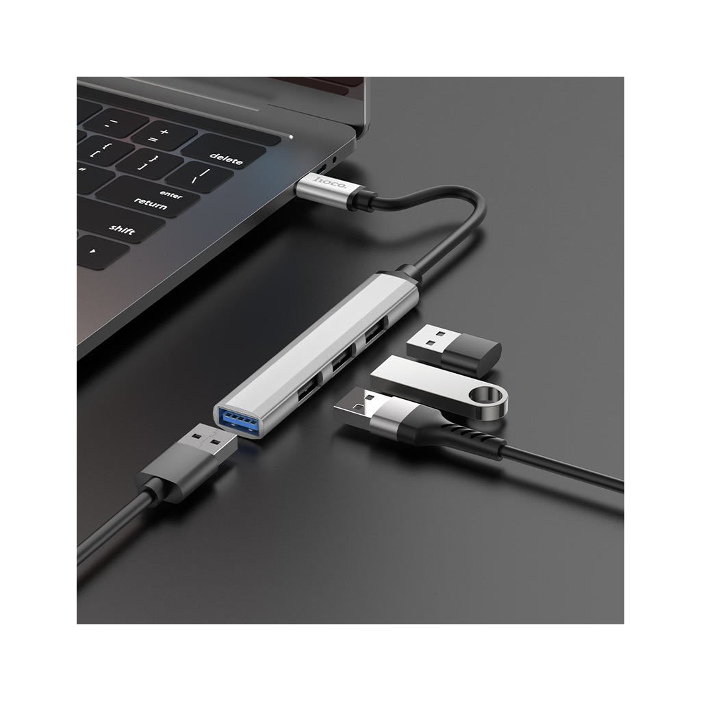 Redukce USB-C Hoco HB26 je šikovným pomocníkem pro rozšíření jednoho USB-C portu na klasické USB porty. Díky němu získáte rovnou čtveřici USB pro zapojení vašeho příslušenství. Jedno z USB je navíc ve standardu 3.0 a podporuje tak rychlé přenosy dat.
