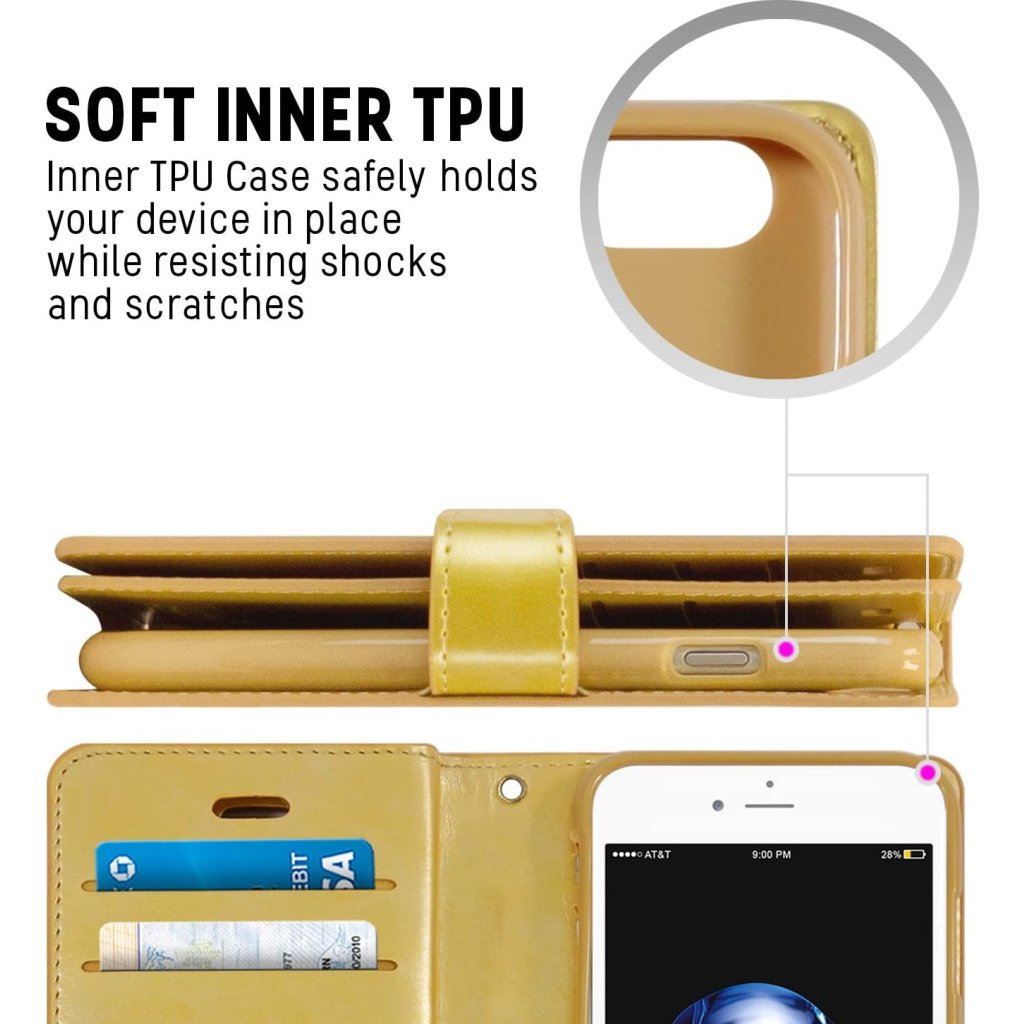 Pouzdro / kryt pro iPhone 7 / 8 / SE (2020/2022) - Mercury, Mansoor Diary Gold